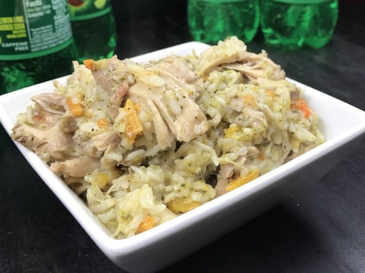 Yup! You read that right. 7UP chicken, rice, and veggies. I promise that once you try it for the first time, it is going to be one of the only ways that you will want to eat your chicken!